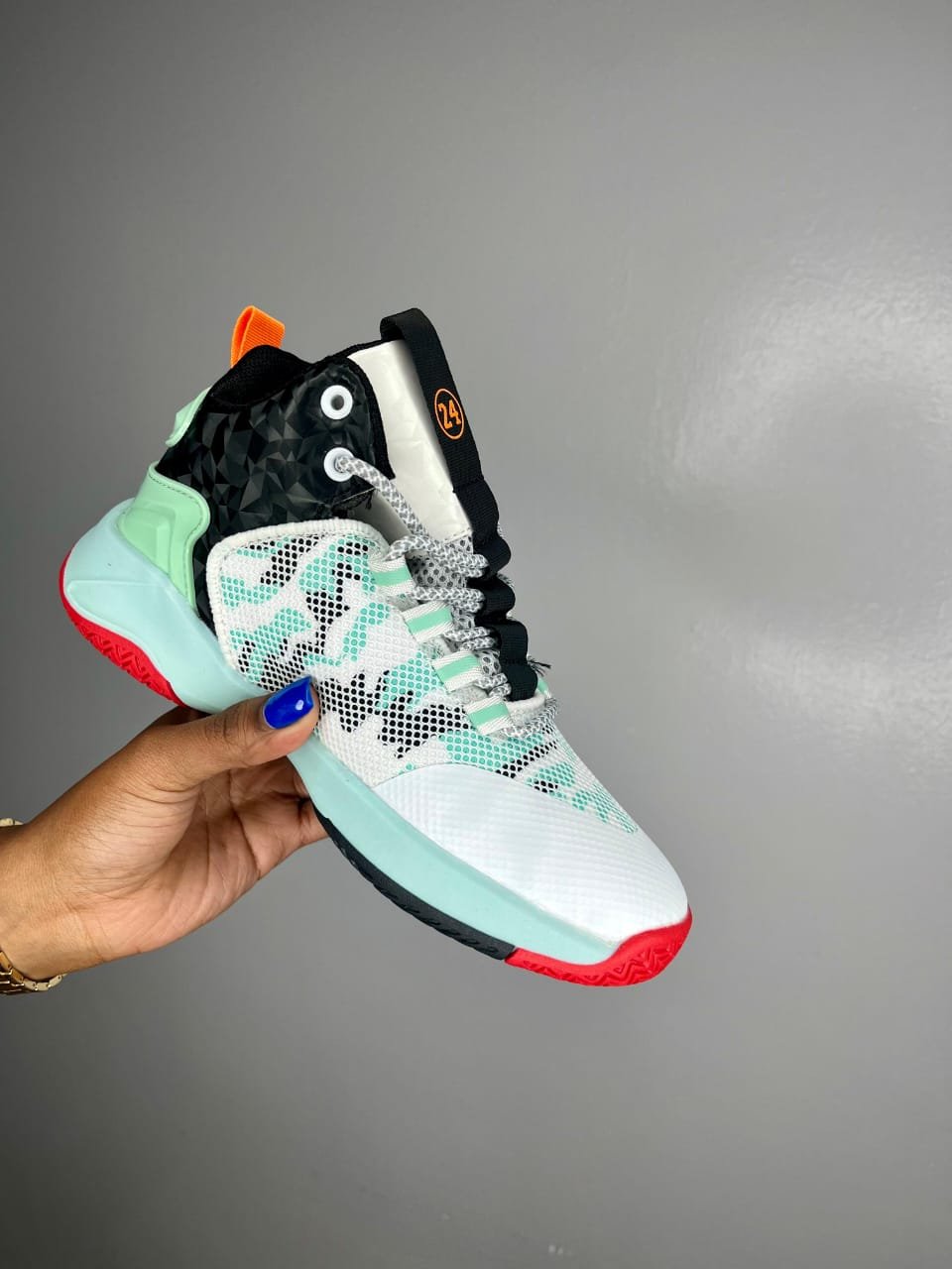 Green, white/blue, yellow